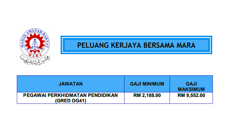 Peluang Kerjaya Bersama Mara Pegawai Perkhidmatan Pendidikan Gred Dg41 Mingguan Kerja