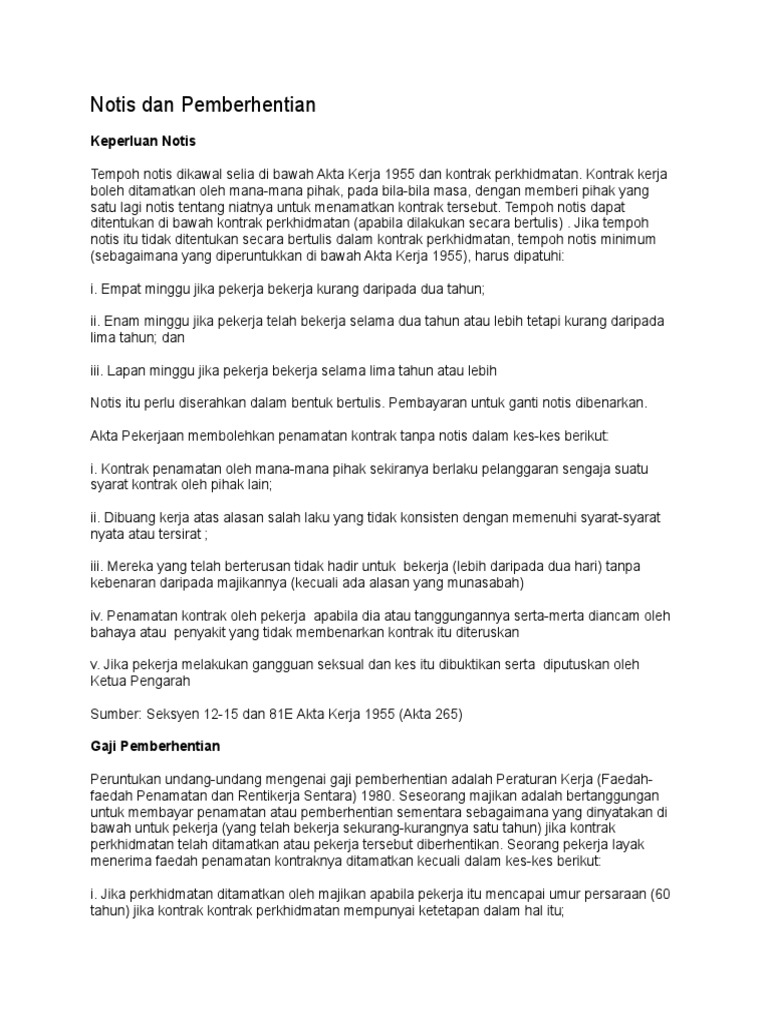 Pemberhentian Pekerja Notis Penamatan Kerja Dari Majikan