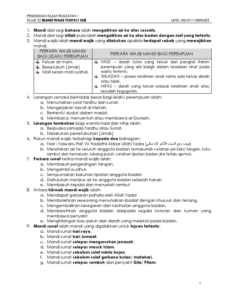 Pendidikan Islam Tingkatan 1 Tajuk 22 Mandi Wajib Penyuci Diri Ustdi Ndr 011 10095423
