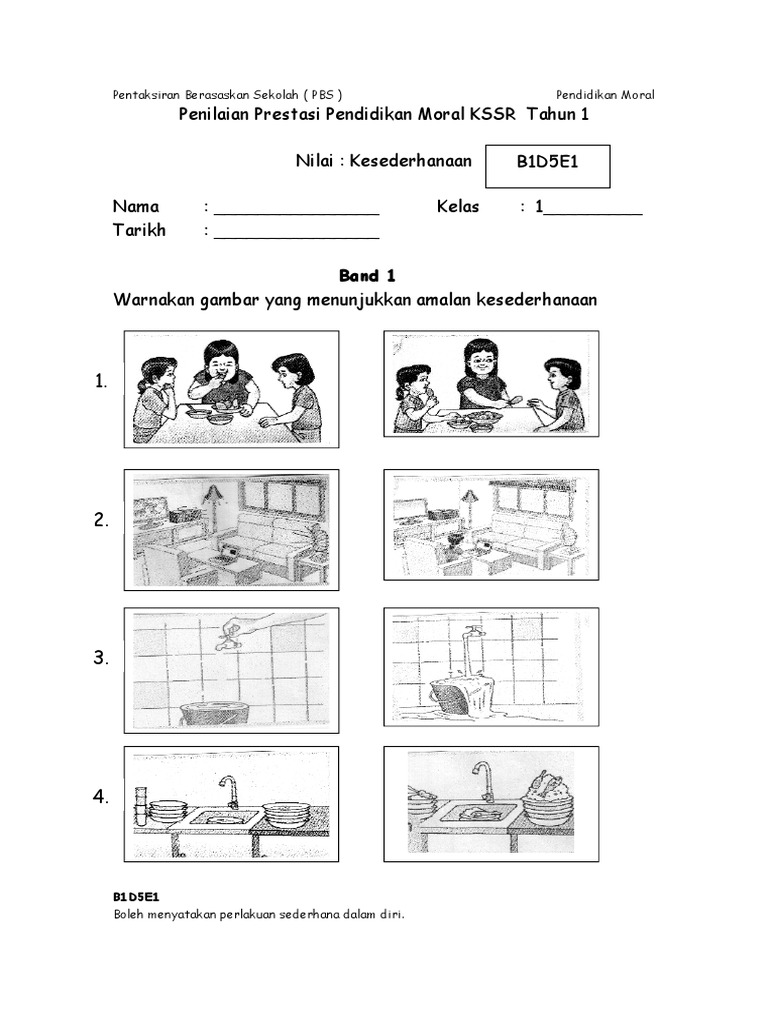 Evidens Pbs Pendidikan Moral Tahun 1 Nilai Kesederhanaan Band 1 6 Pdf Document
