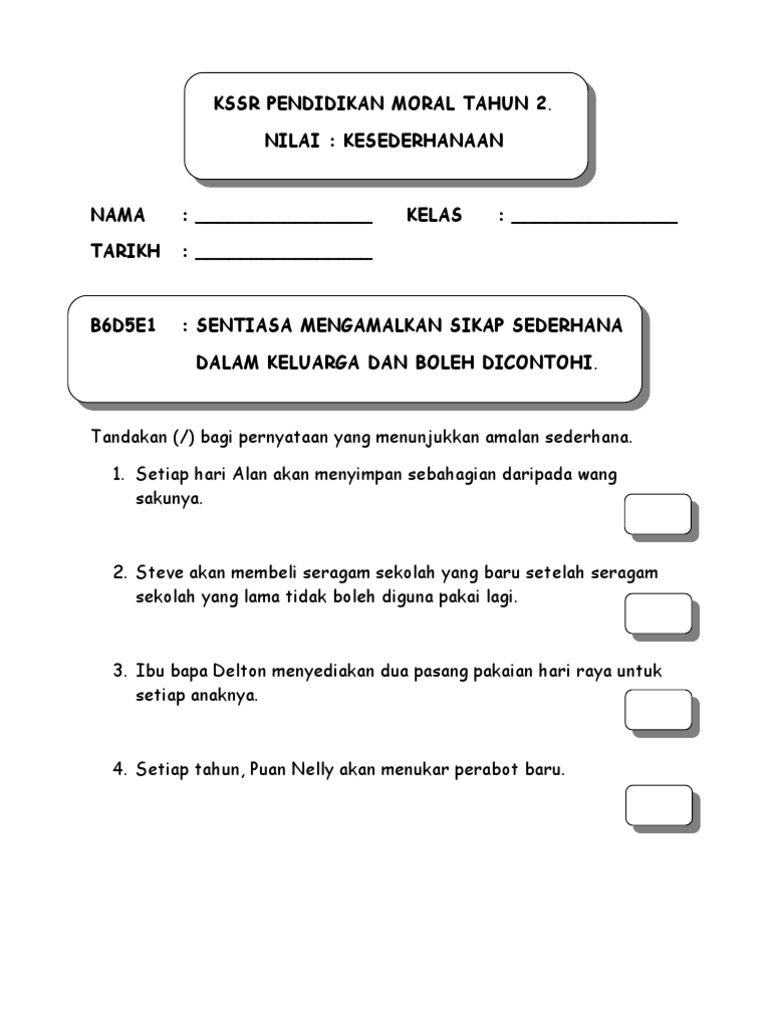 Pendidikan Moral Tahun 1 Nilai Kesederhanaan