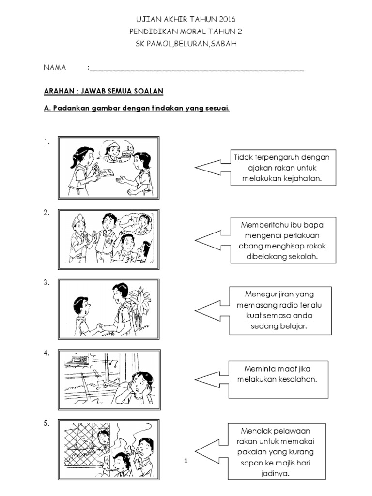 Soalan Ujian Pendidikan Moral Tahun 2 Kssr