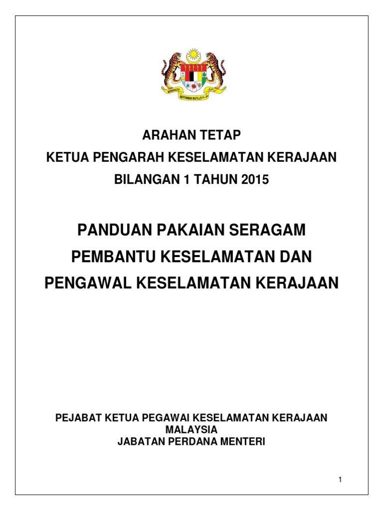 Arahan Tetap Ketua Pengarah Keselamatan Kerajaan Bilangan 1 Tahun 2015 Panduan Pakaian Seragam Pembantu Keselamatan Dan Pengawal Keselamatan