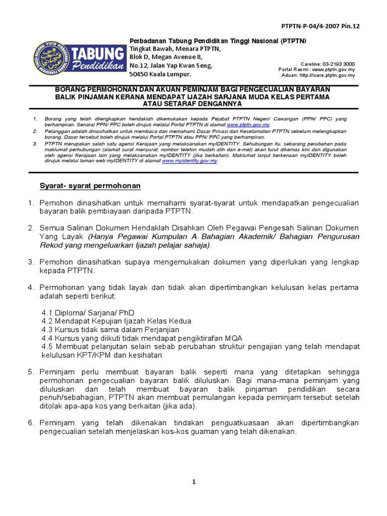 Permohonan Pengecualian Ptptn Bagi Pemegang Ijazah Kelas Pertama