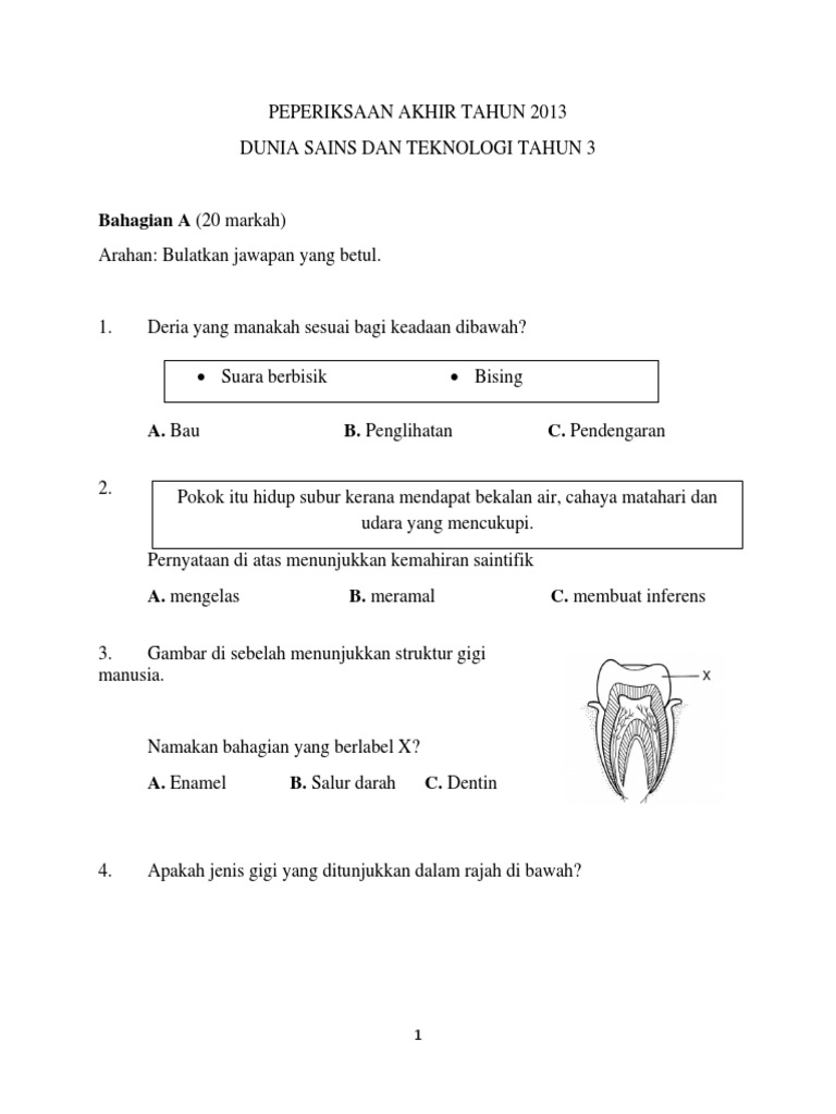 Soalan Peperiksaan Akhir Tahun 2013 Dunia Sains Dan Teknologi Tahun 3