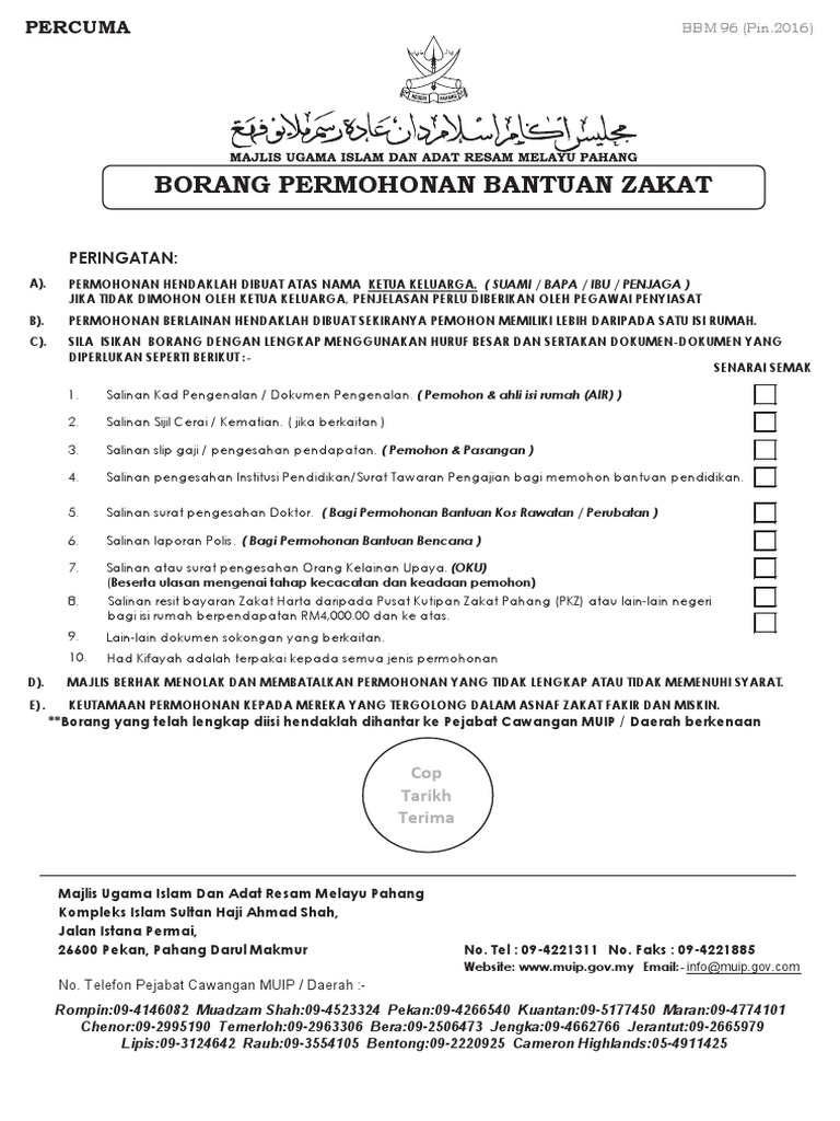 Borang Permohonan Bantuan Zakat Fakir Miskin Asnaf