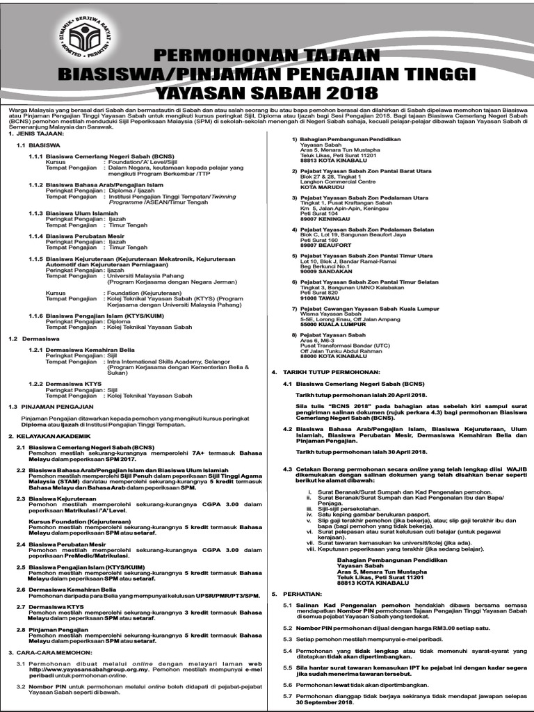 Biasiswa Yayasan Sabah 2020 Online Biasiswa 2020 2021