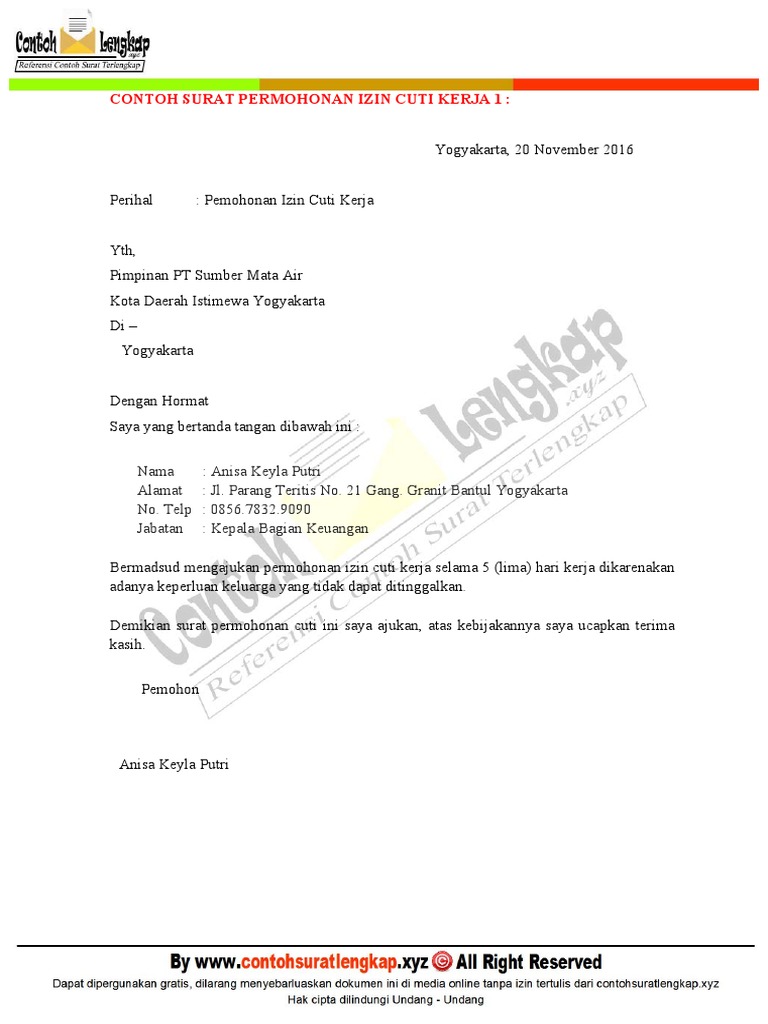 Contoh Surat Cuti Kerja Ilmusosial Id