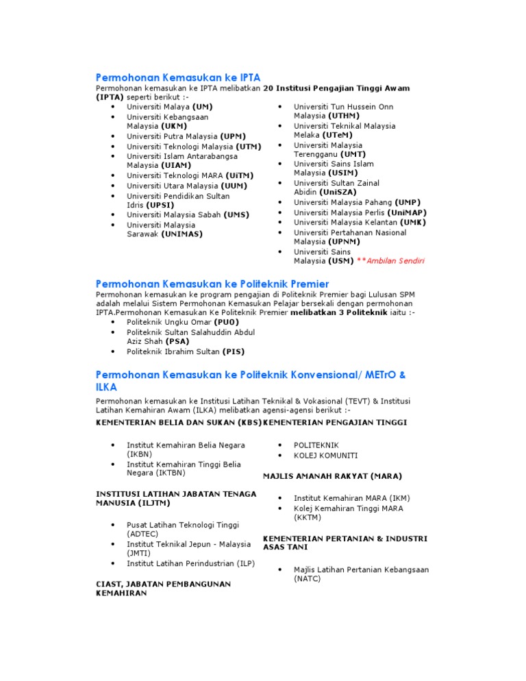 Syarat Kemasukan Kolej Vokasional Kv Dan Smt Permohonan My