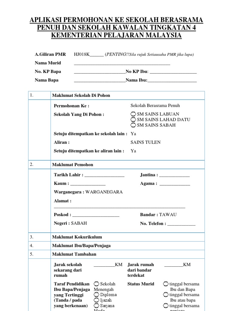 Permohonan Sbp Tingkatan 4 2020