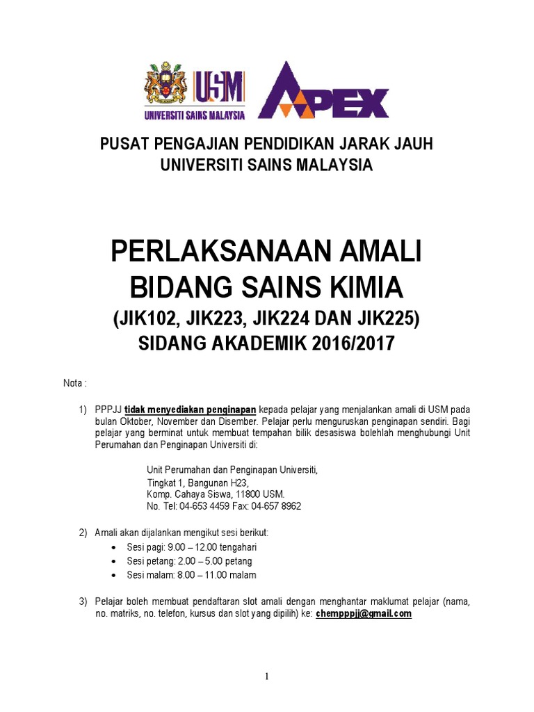 Kaedah Perlaksanaan Amali Kimia Sesi 2016 2017