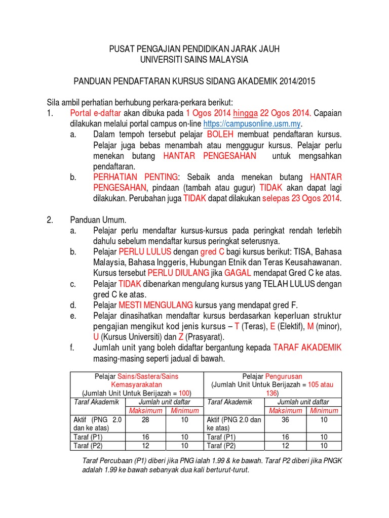 Pengumuman Pendaftaran Kursus Secara E Daftar Sa 2015 2016