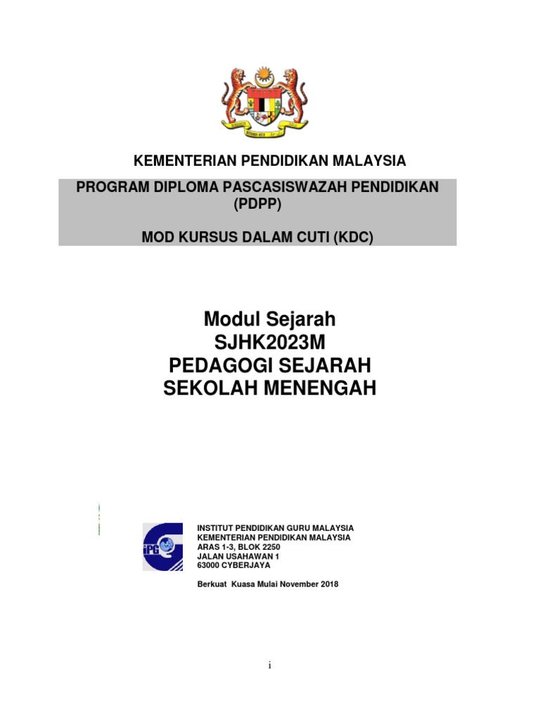 Modul Sejarah Sjhk2023m Pedagogi Sejarah Sekolah Menengah