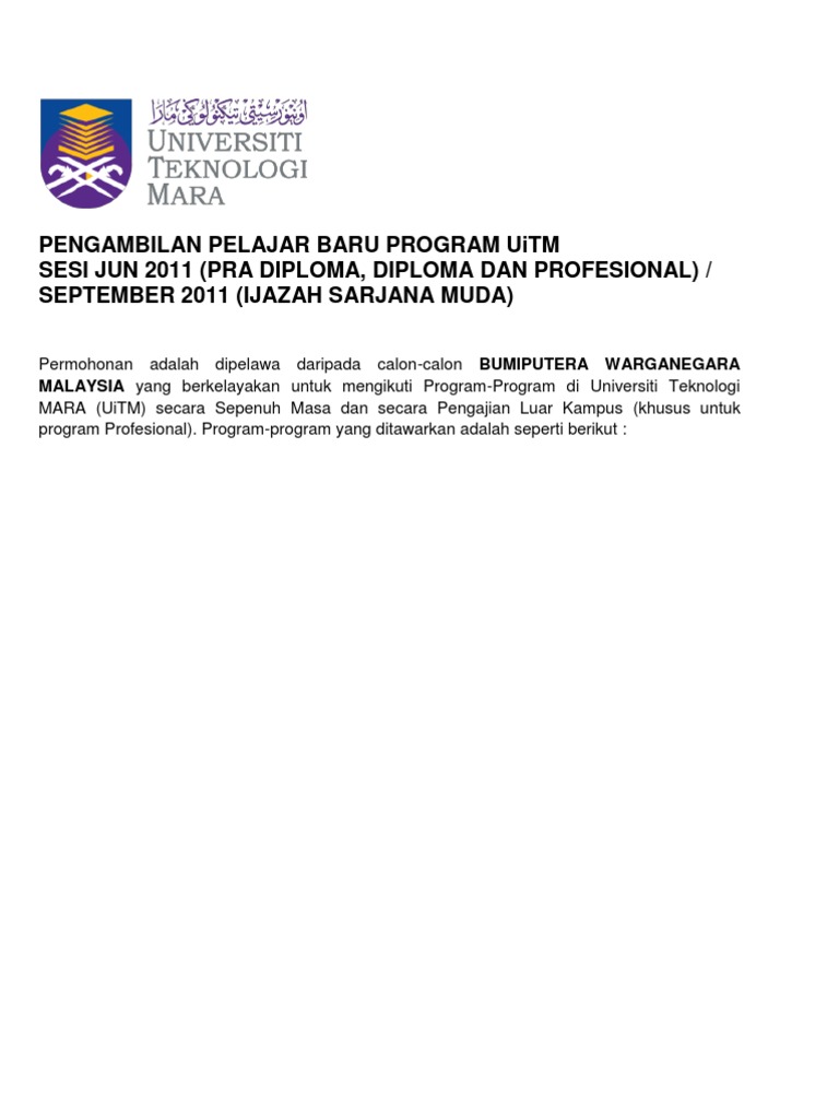 Program Yang Ditawarkan Di Uitm Jengka