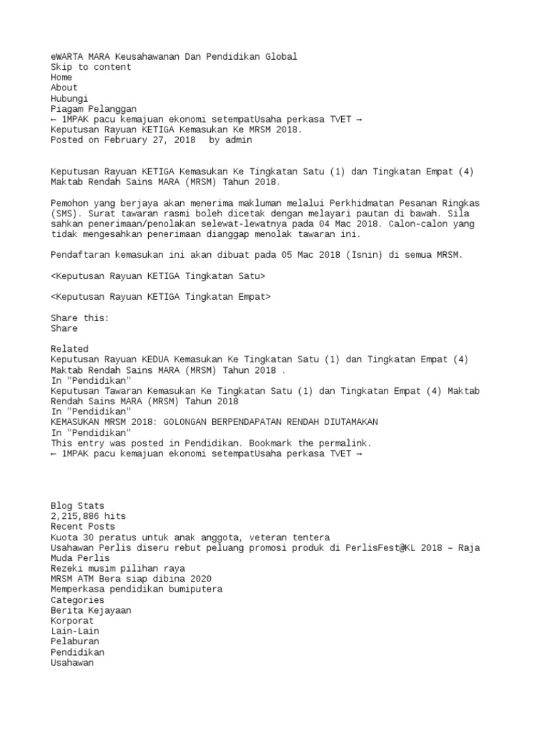 Rayuan Mrsm Tingkatan 1 Kemasukan 2020 Semakan Keputusan