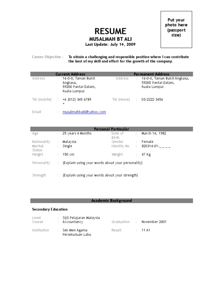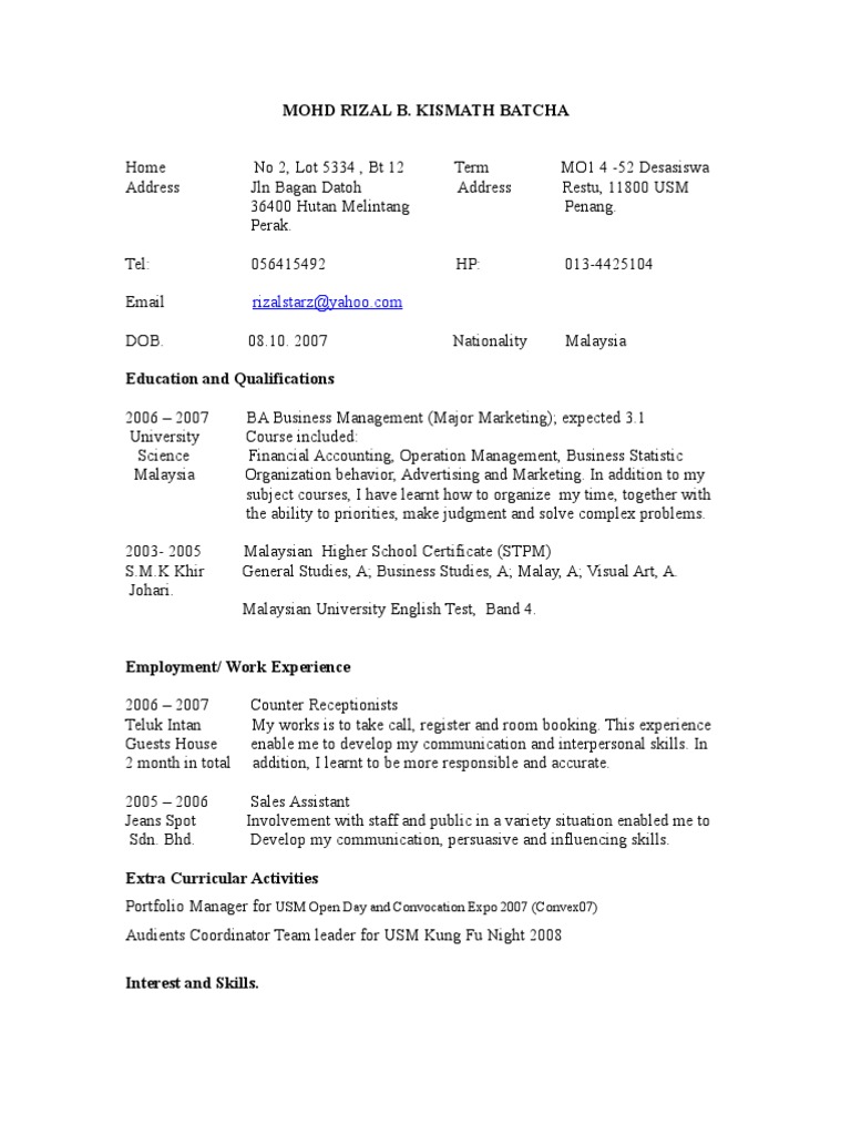 Resume Sample Spm Malaysia Business