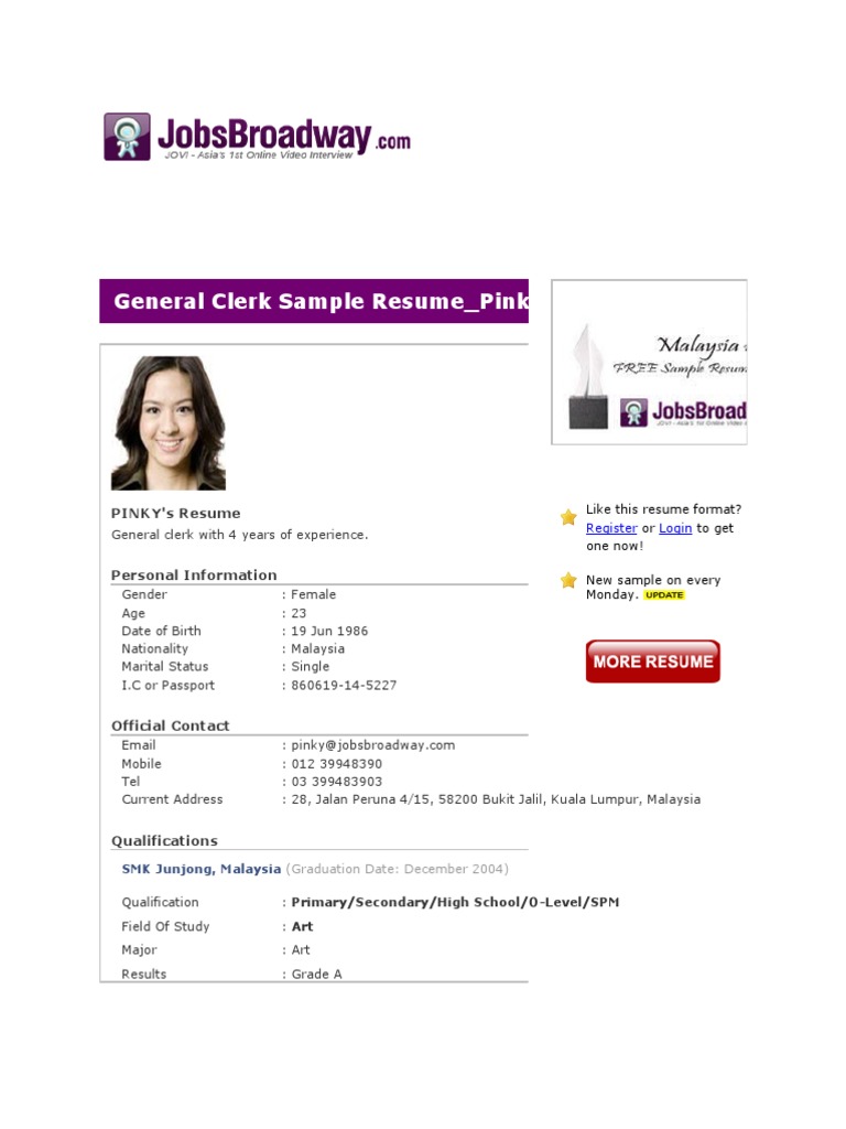 General Clerk Sample Resume