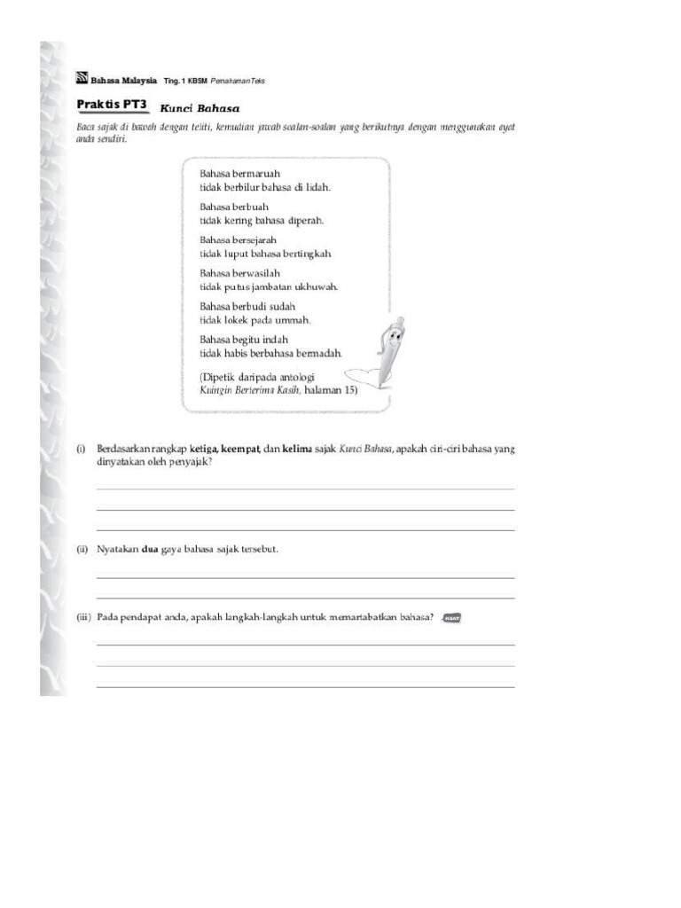 Sajak Kunci Bahasa Bahasa Melayu Tingkatan 1 Youtube