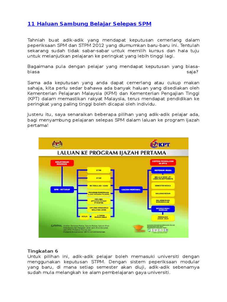 Halatuju Pendidikan Selepas Spm Sijil Pelajaran Malaysia Info Upu