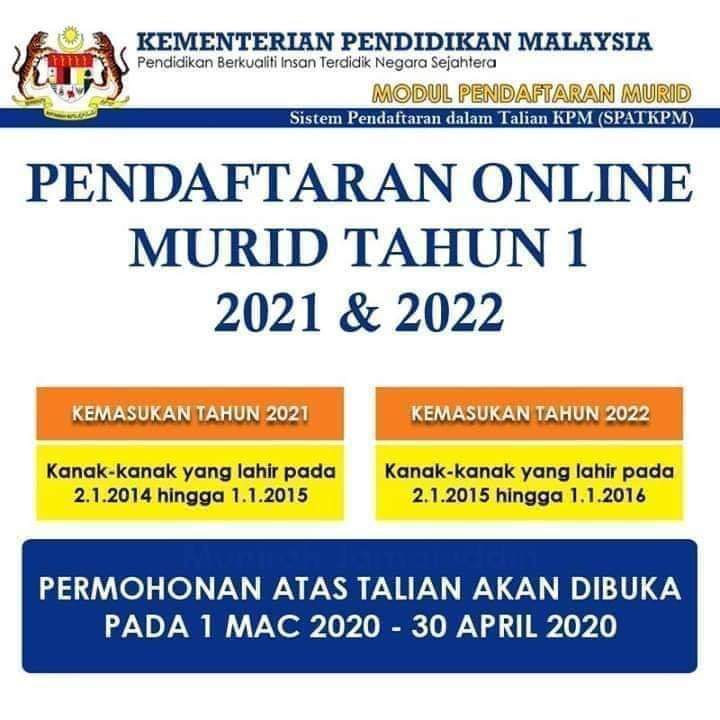 Pendaftaran Murid Tahun 1 Sesi 2021 2022 Permohonan Online