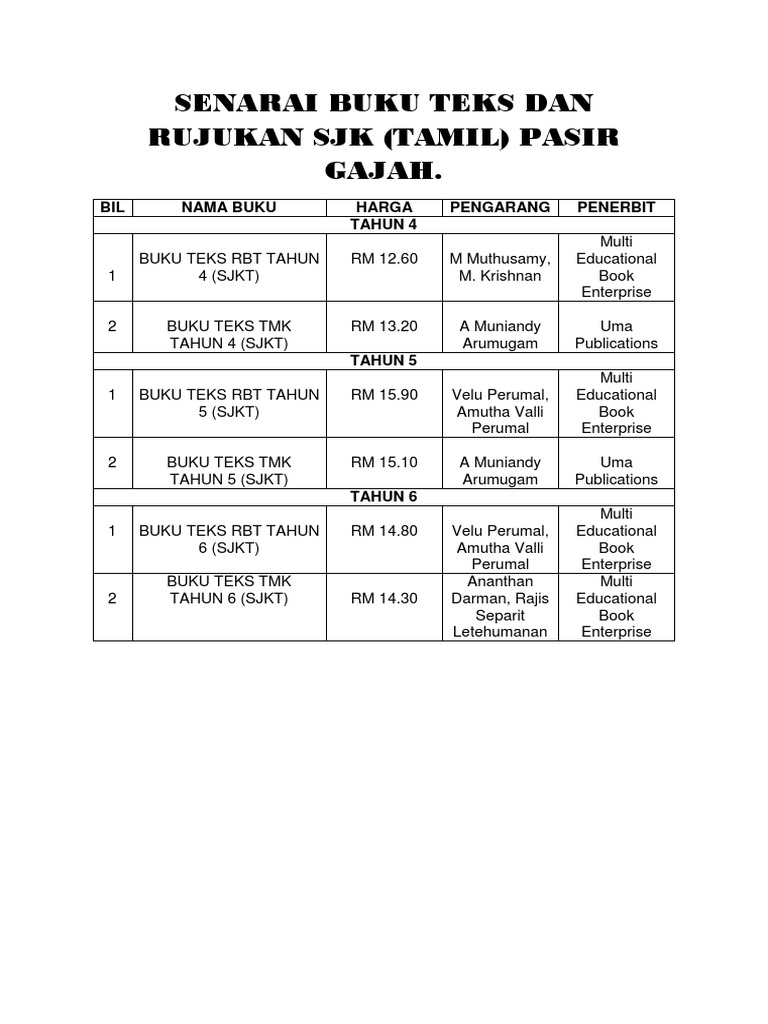 Senarai Harga Buku Kssr Tahun 4
