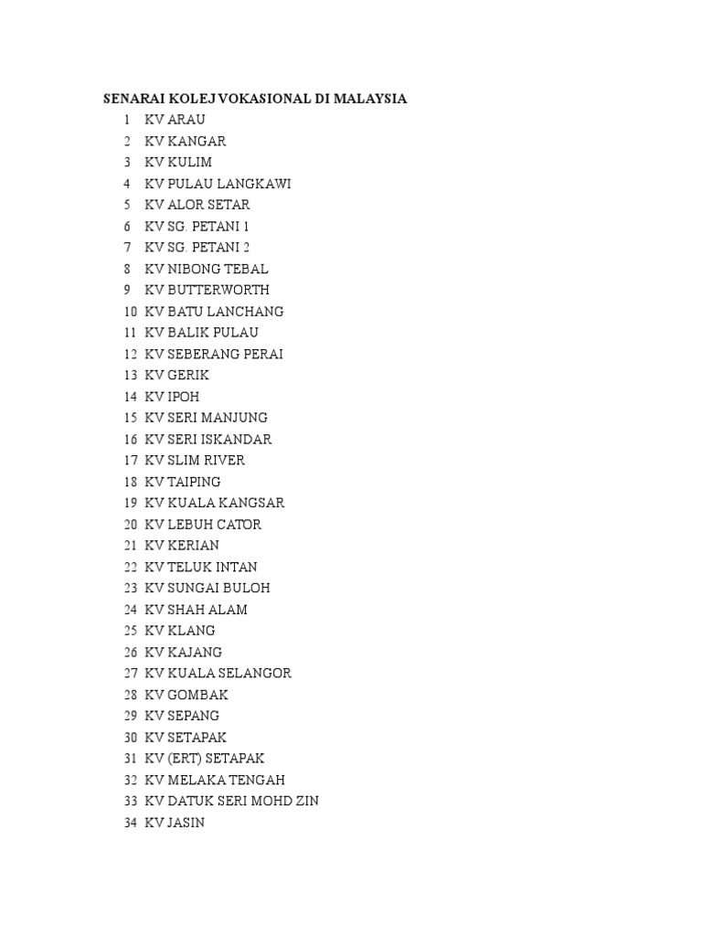 Senarai Kolej Vokasional Dan Kursus Yang Ditawarkan Di Kv