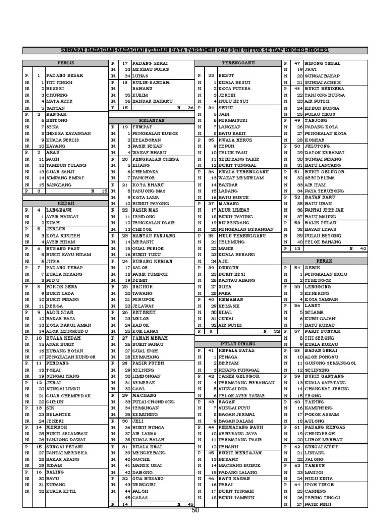 Senarai Kawasan Parlimen Dan Dewan Undangan Negeri