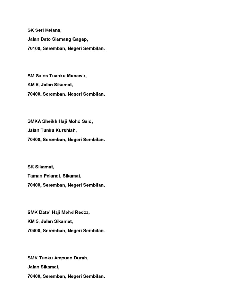 Senarai Sekolah Di N9 Pdf Document