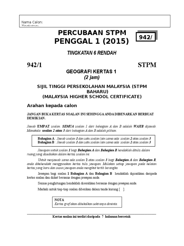 Geografi Stpm Soalan Peperiksaan Percubaan Penggal 1 2016