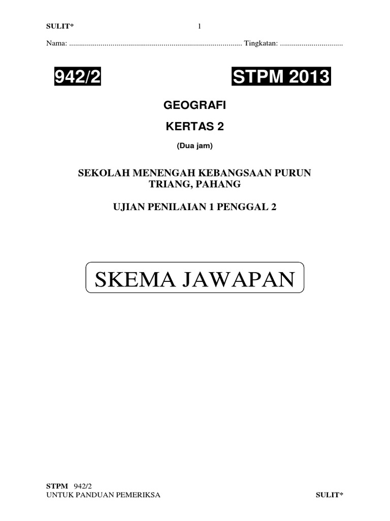 Skema Jawapan Geografi Stpm Penggal 1 2015