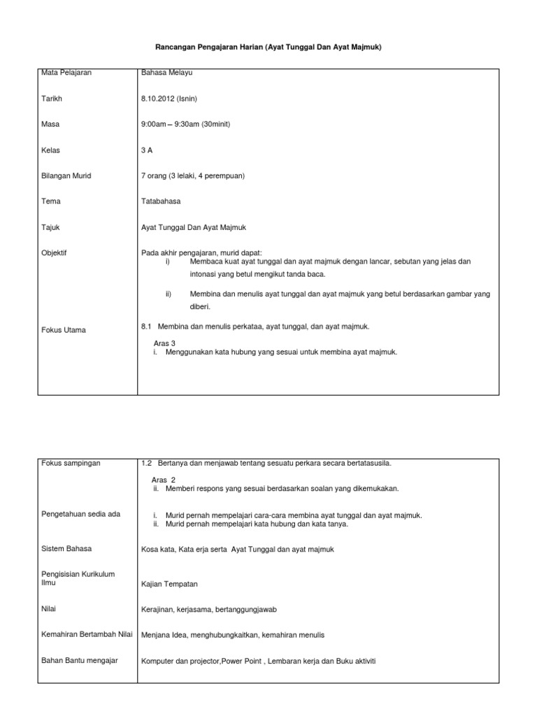 Ayat Tunggal Tahun 1 Sumber Pengajaran