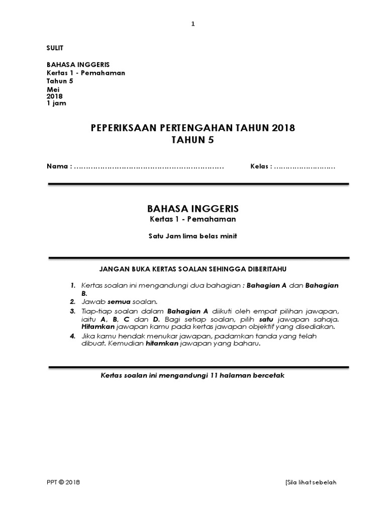 Pdf Soalan Kertas Pemahaman Bahasa Inggeris Bi Tahun 2 English Year 2 Peperiksaan Pertengahan Tahun Kssr Kertas 1 Paper 1 Zulfahami Zahari Academia Edu
