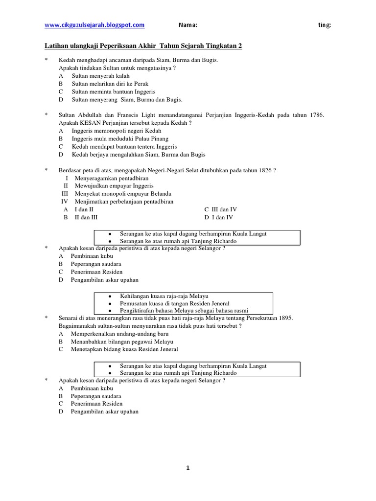 Megafileupload Latihan Ulangkaji Peperiksaan Akhir Tahun Sejarah Tingkatan 2 Docx