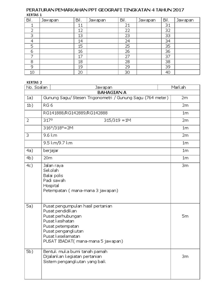 Peraturan Pemarkahan Uat Geografi Tingkatan 4 Tahun 2019