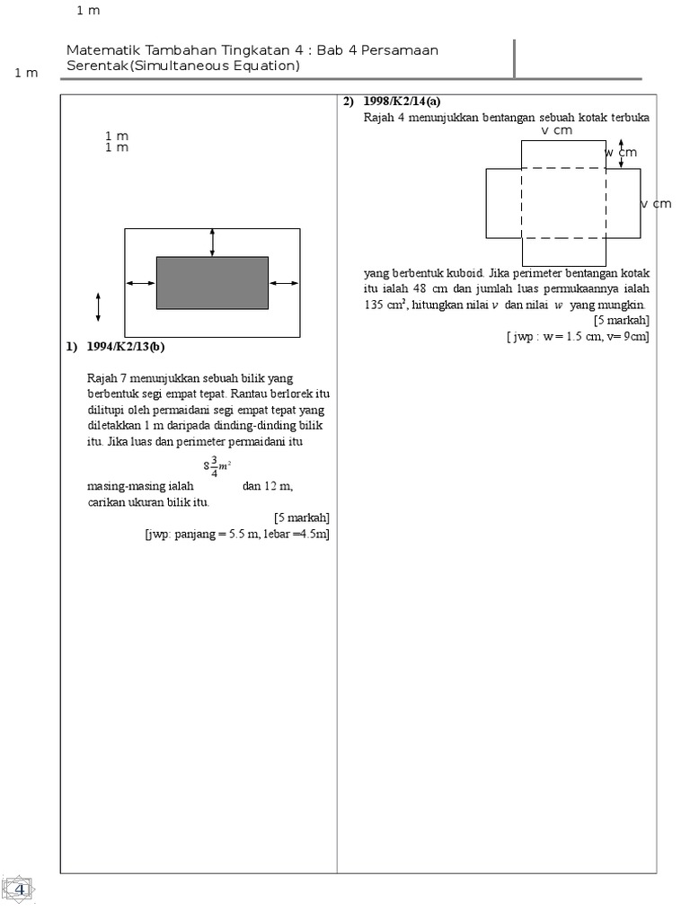 Soalan Kbat Matematik Tingkatan 4 Persamaan Kuadratik