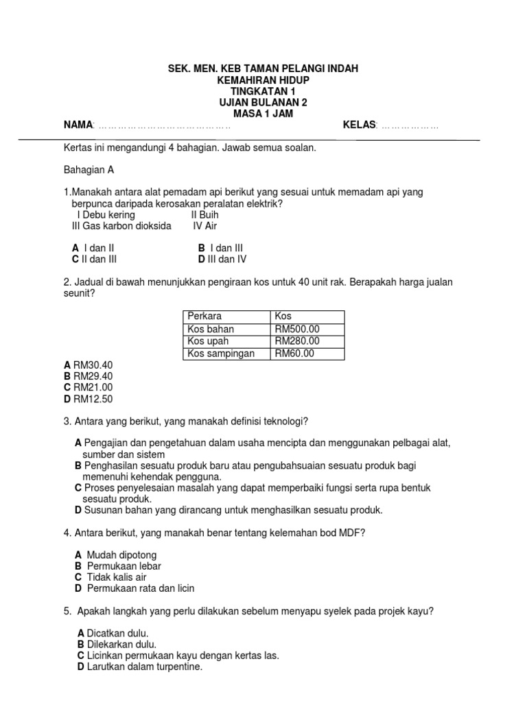 Soalan Kemahiran Hidup Tingkatan 2 Teras Cute766