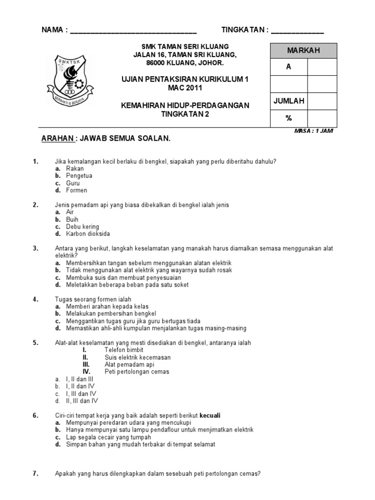 Kertas Soalan Pt3 Kemahiran Hidup 2014 Soalan At