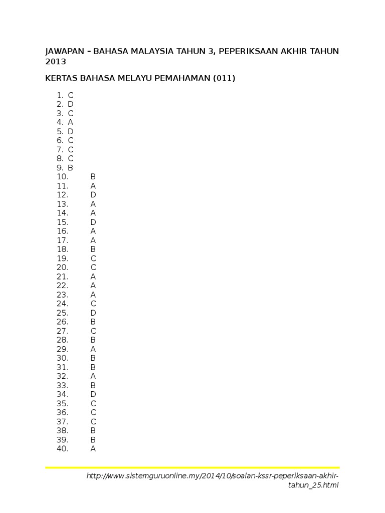 Jawapan Soalan Ujian Bahasa Melayu Kertas 1 Kertas 2 Tahun 3 Kssr