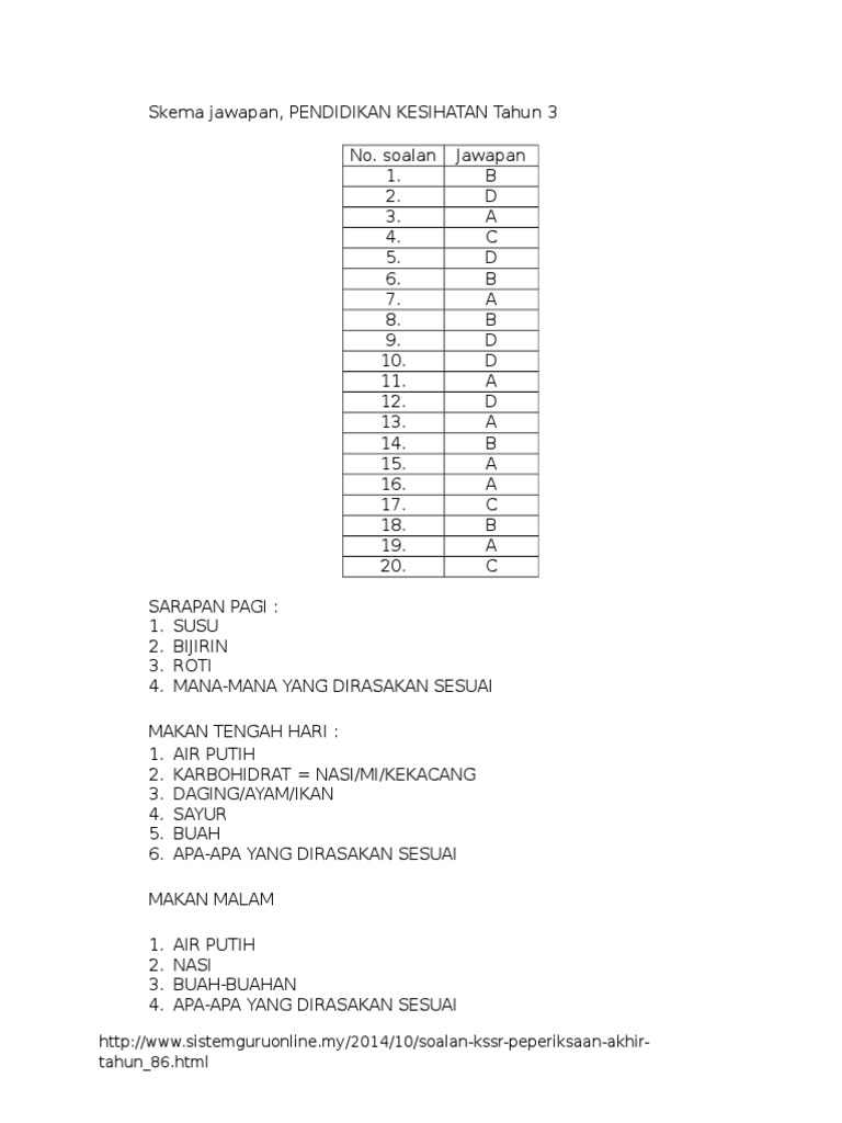 Jawapan Kertas Ujian Pendidikan Kesihatan Tahun 3 Kssr