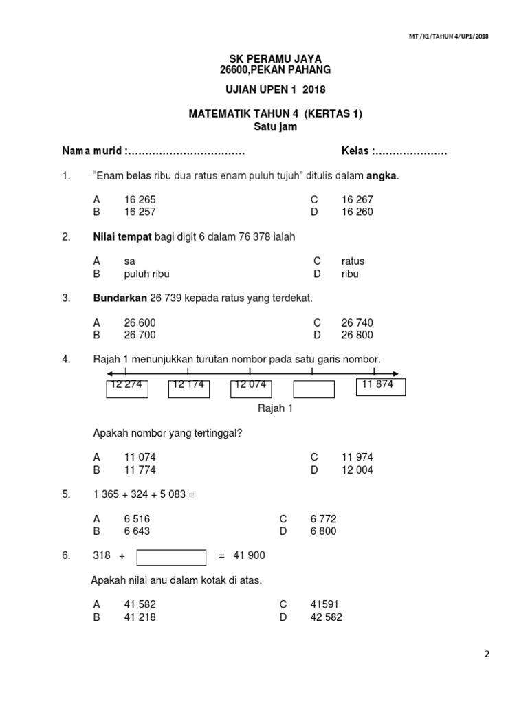 Ujian Bulan Mac Matematik Tahun 4 2018 Gurubesar My