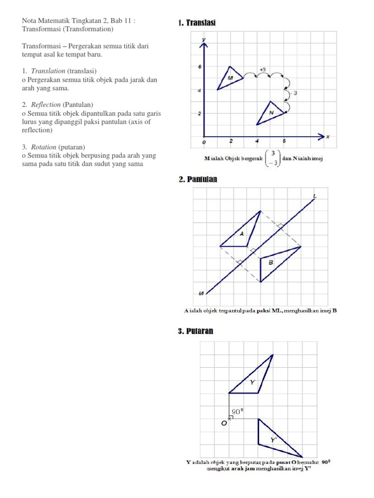 Nota Matematik Tingkatan 2 Bab 11 Transformasi