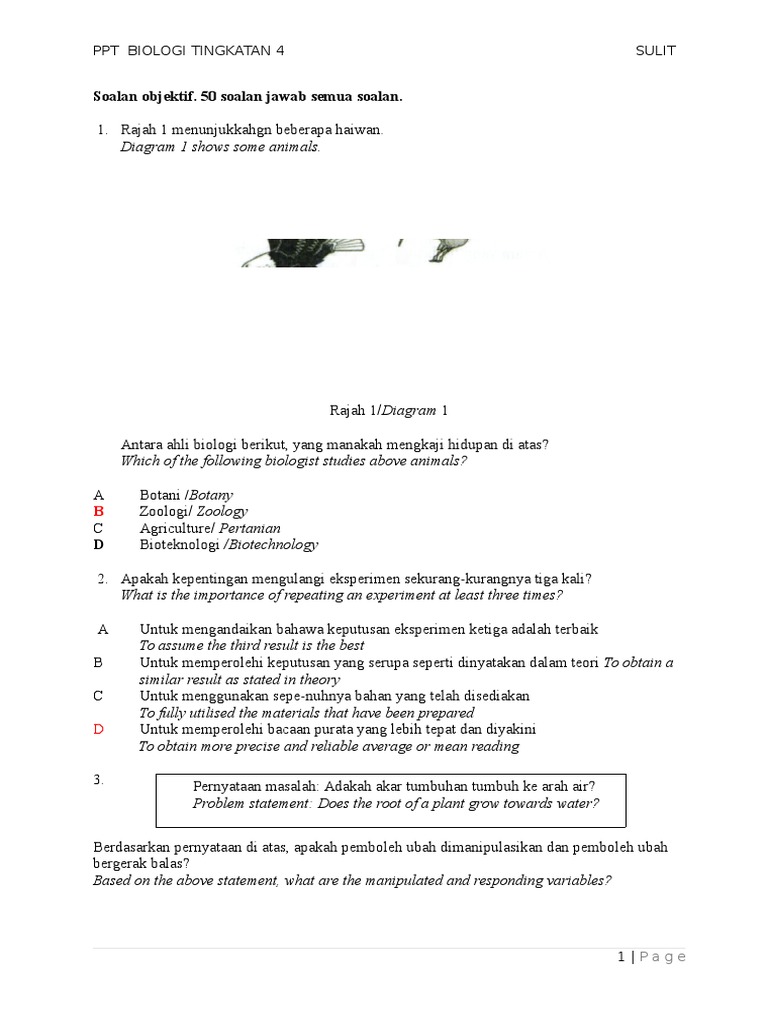 Soalan Biologi Tingkatan 4 Peperiksaan Akhir Tahun Persoalan S Cute766