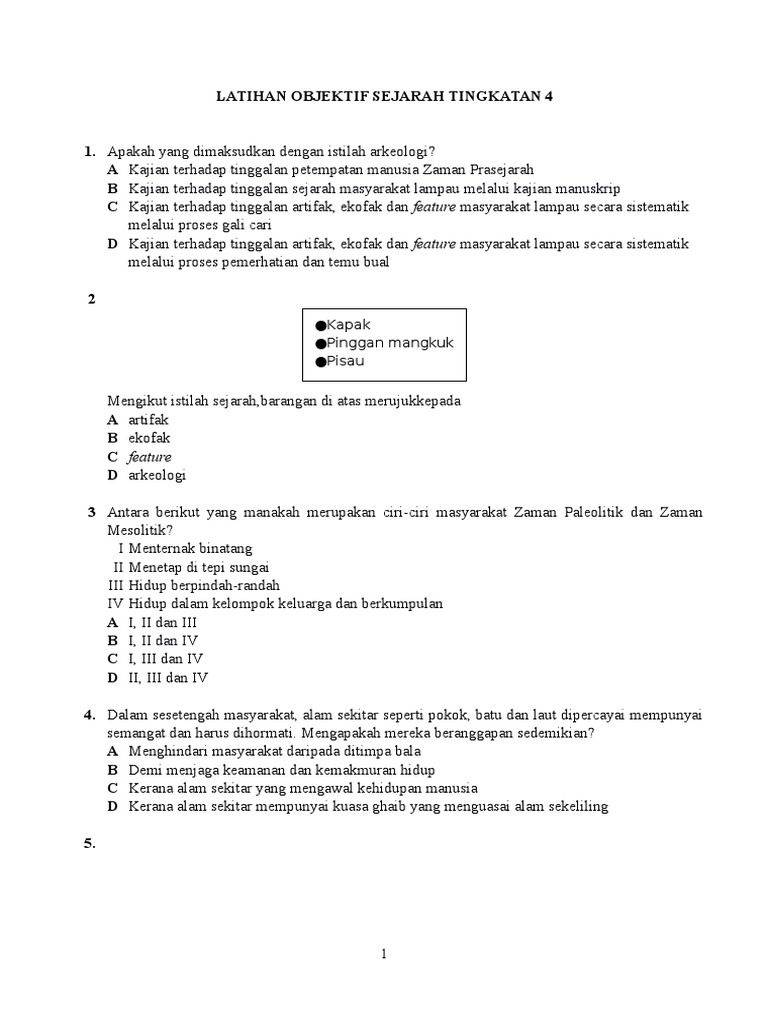 Latihan Objektif Sejarah Tingkatan 4
