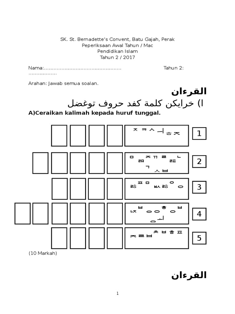 Kertas Soalan Pendidikan Islam Tahun 3 Doc Document