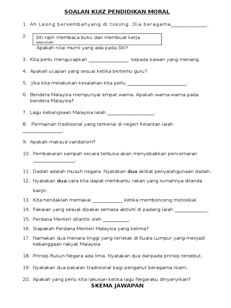 Contoh Soalan Pendidikan Moral Tahun 1 Kssr Jalan Kutai A