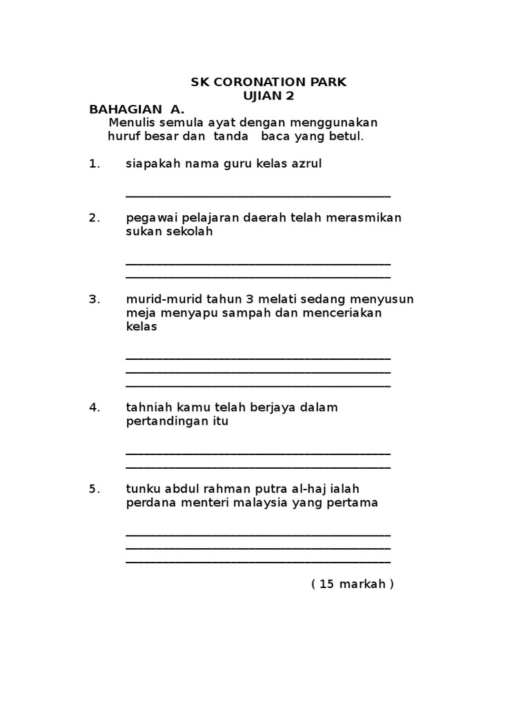 Kertas ujian pendidikan kesihatan tahun 3 kssr. Akhir tahun bm penulisan tahun 3 set 2. Menulis semula ayat dengan menggunakan huruf besar dan tanda baca yang betul 1. Peperiksaan akhir tahun akan dilangsungkan di seluruh sekolah setiap hujung tahun akhir semesta.