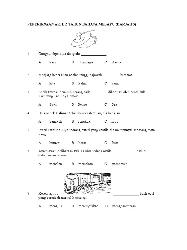 Contoh Kertas Peperiksaan Bahasa Malaysia Tahun 3 Kertas 2