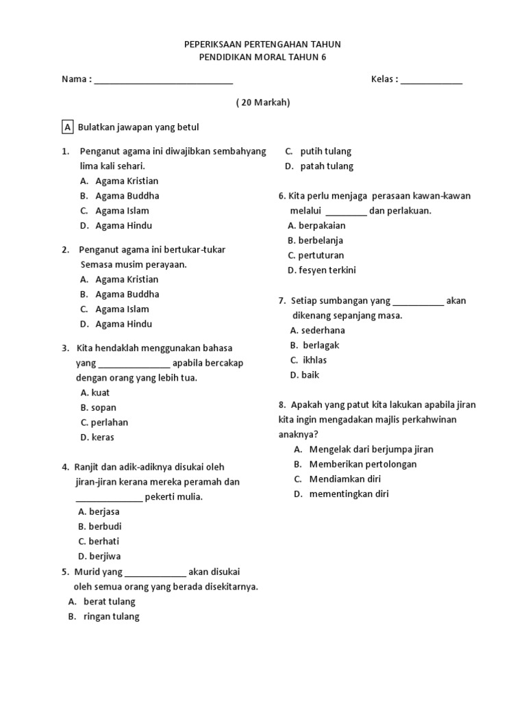 Soalan Peperiksaan Pertengahan Tahun Pendidikan Moral Tahun 6 Menarik Peperiksaan Semester 1 Pk Tahun 5 Skoloh