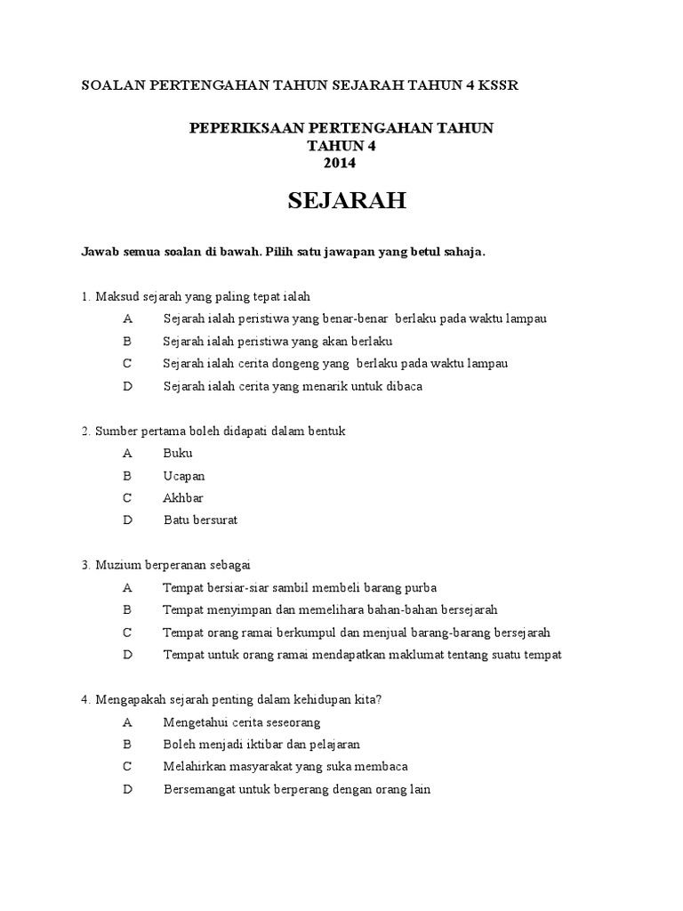 Contoh Soalan Sejarah Tahun 4 Kssr Helowinj