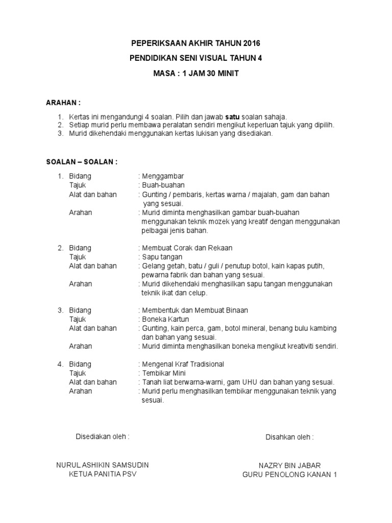 Doc Ujian Mac Tahun 2016 Pendidikan Seni Visual Tahun 5 Kell Chung Academia Edu